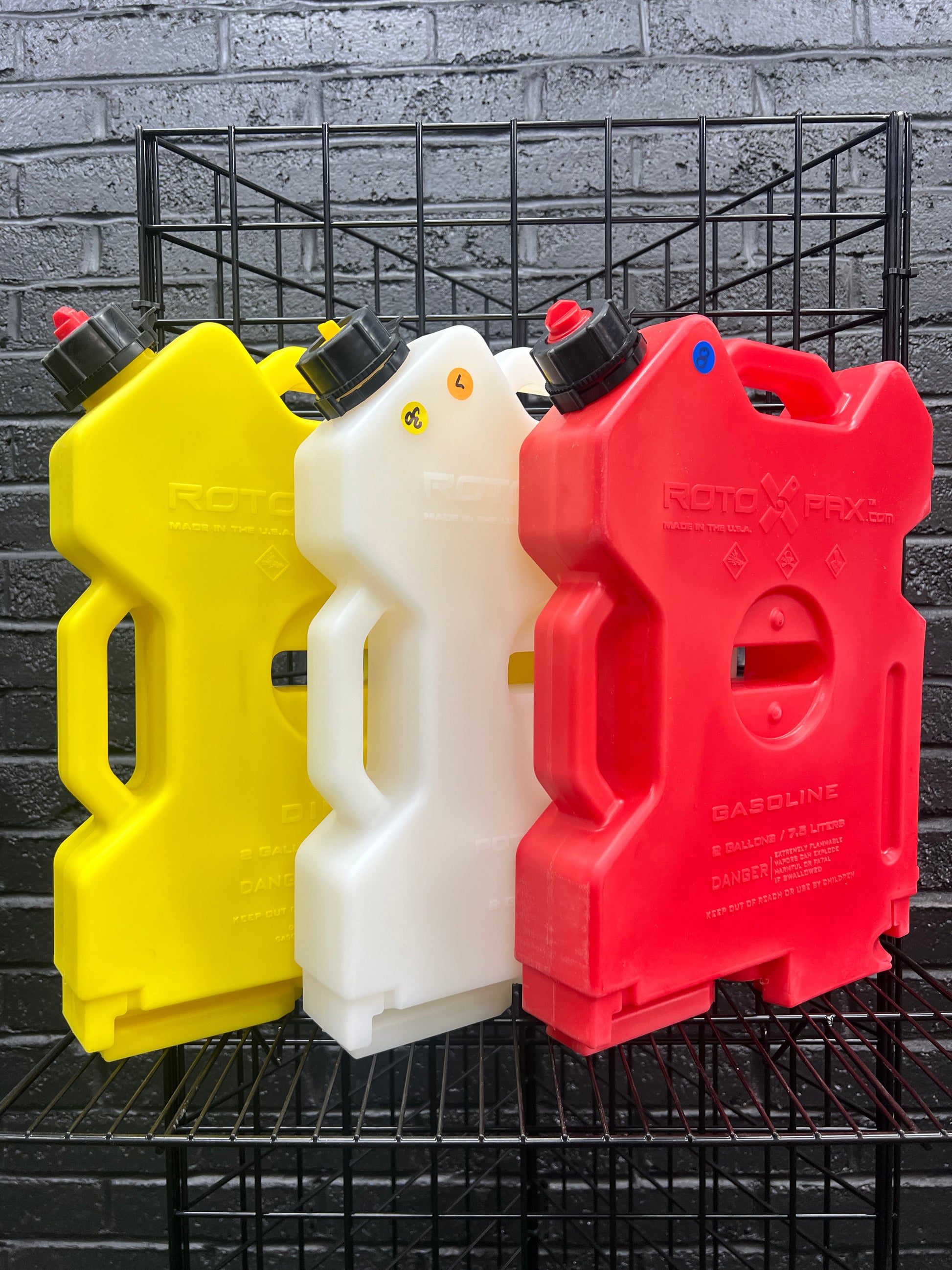 Yellow diesel container only; mounting kit sold separately. Spout included. Leak-proof and durable roto-molded container with thicker walls and strong construction. The sure-seal gasket guarantees your spout won't leak or vibrate loose. Rotopax is the only rotationally molded EPA- and CARB-compliant container available for sale in the United States. Made in the USA. 3" x 13 1/2" x 18"