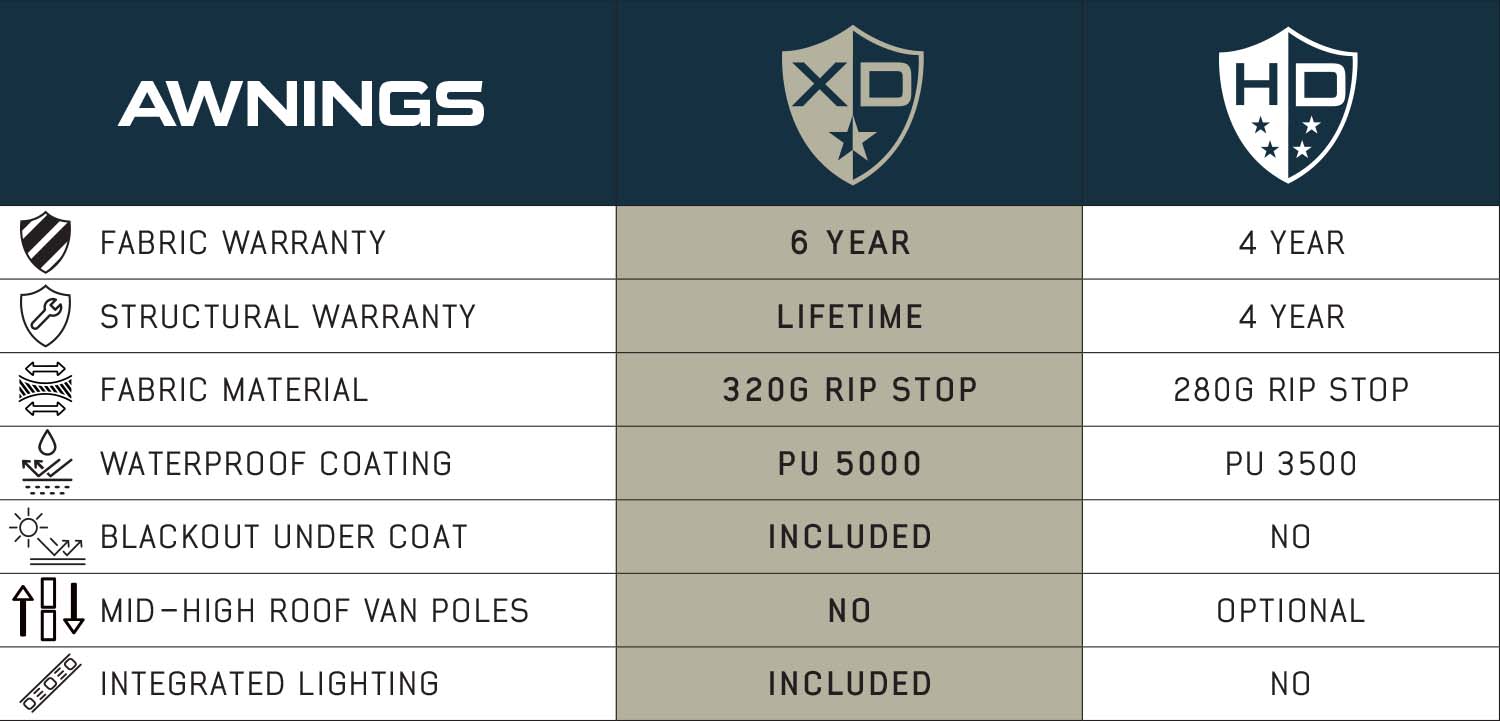The XD (Extreme Duty) family from Overland Vehicle Systems represents the highest standard in durability, fabric quality, and innovation — including blackout technology, aerospace-grade components, and lifetime structural warranties.